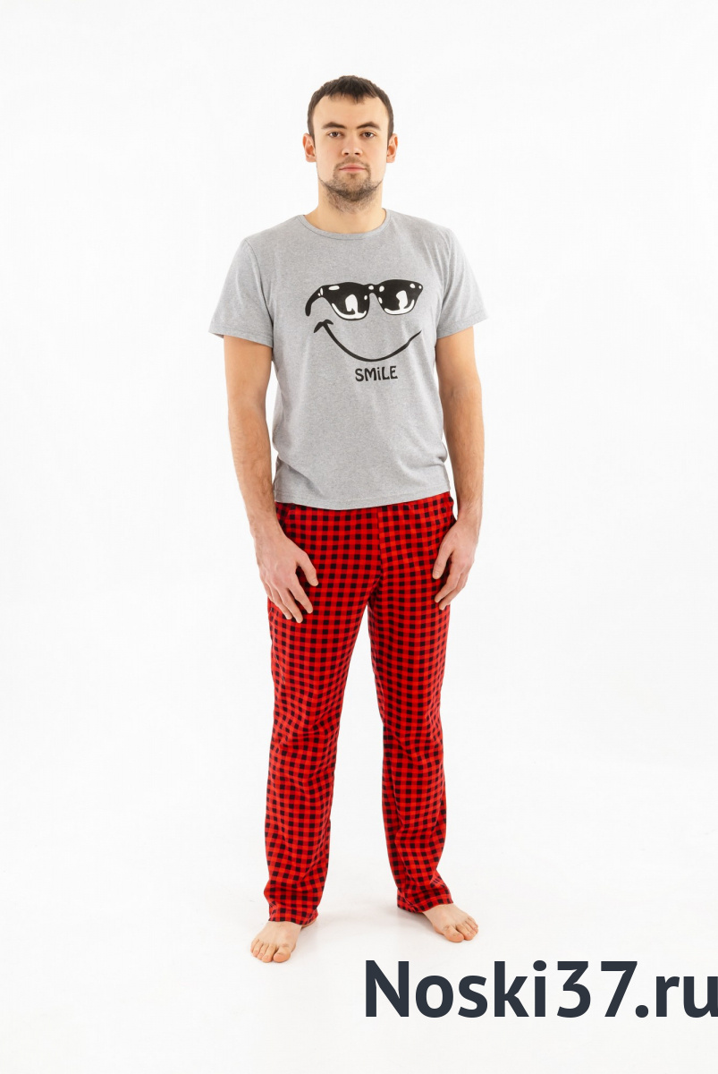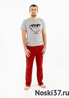 > Брюки мужские с карманами Клетка (красный) № LB-бк-1